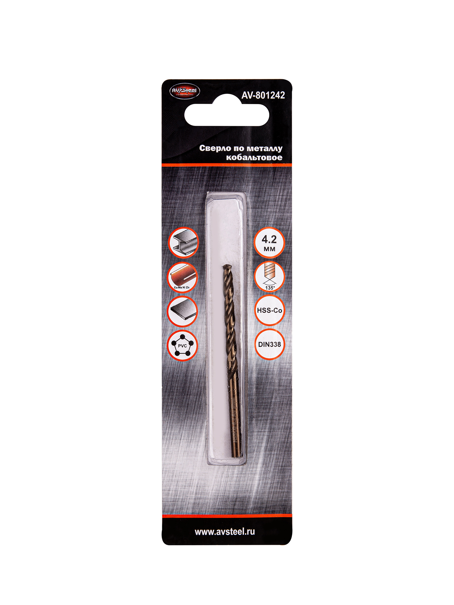 Сверло кобальтовое по металлу 4,2мм HSS-Co 5% (P6M5K5/M35) "AV Steel" AV-801242