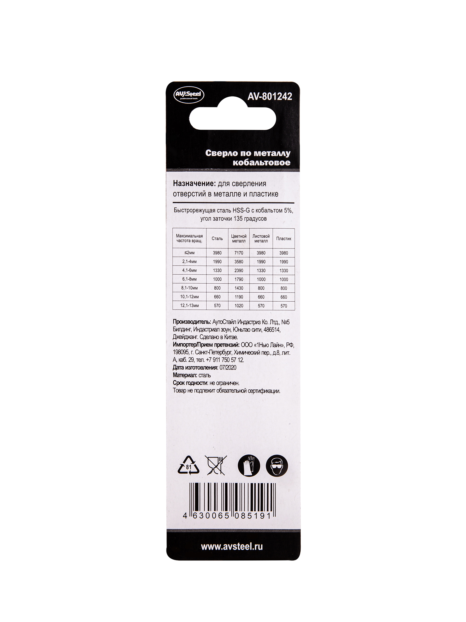 | Подгруппа товара | Cверла по металлу HSS-Co 5% |