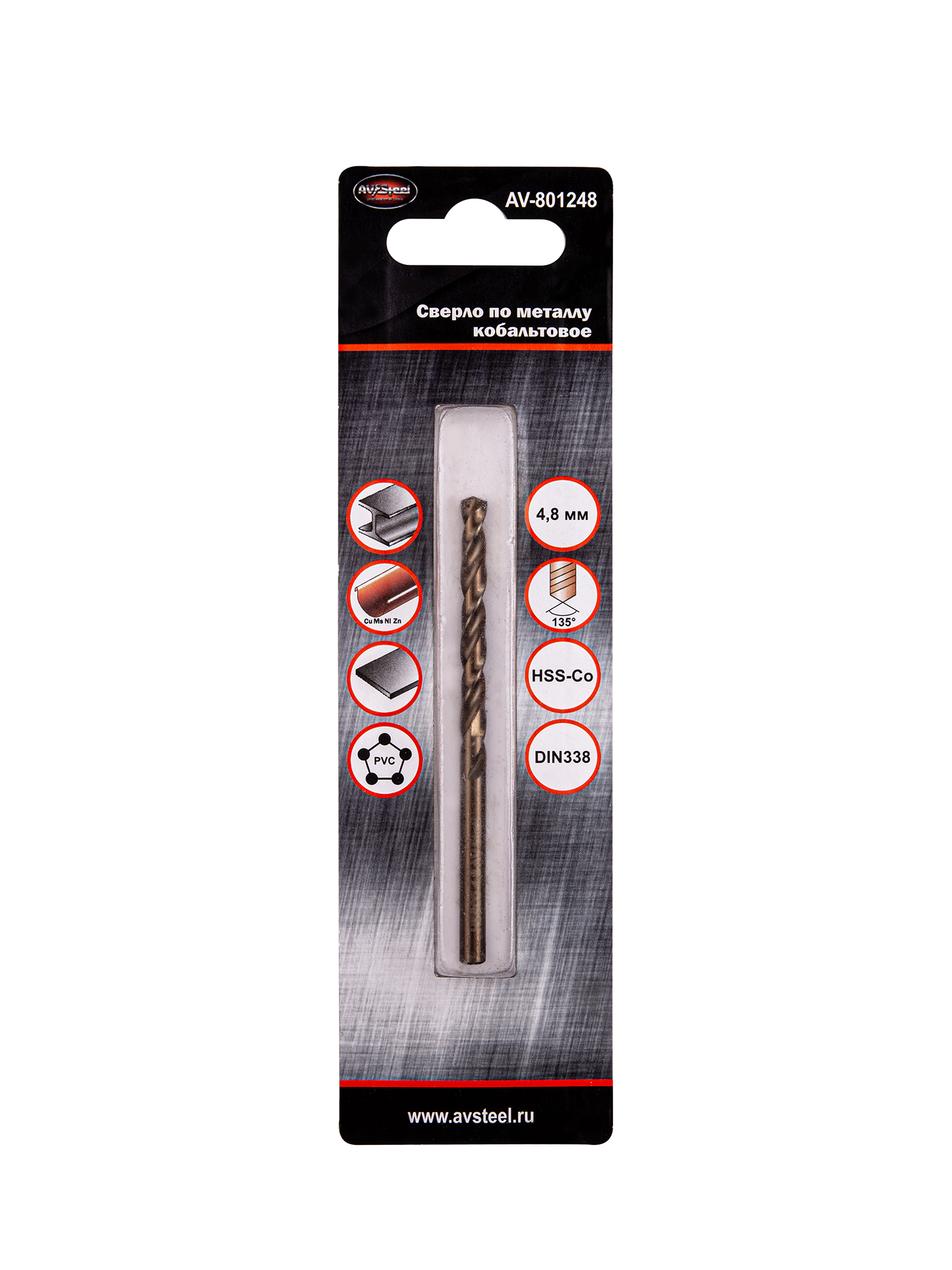 Сверло кобальтовое по металлу 4,8мм HSS-Co 5% (P6M5K5/M35) "AV Steel" AV-801248