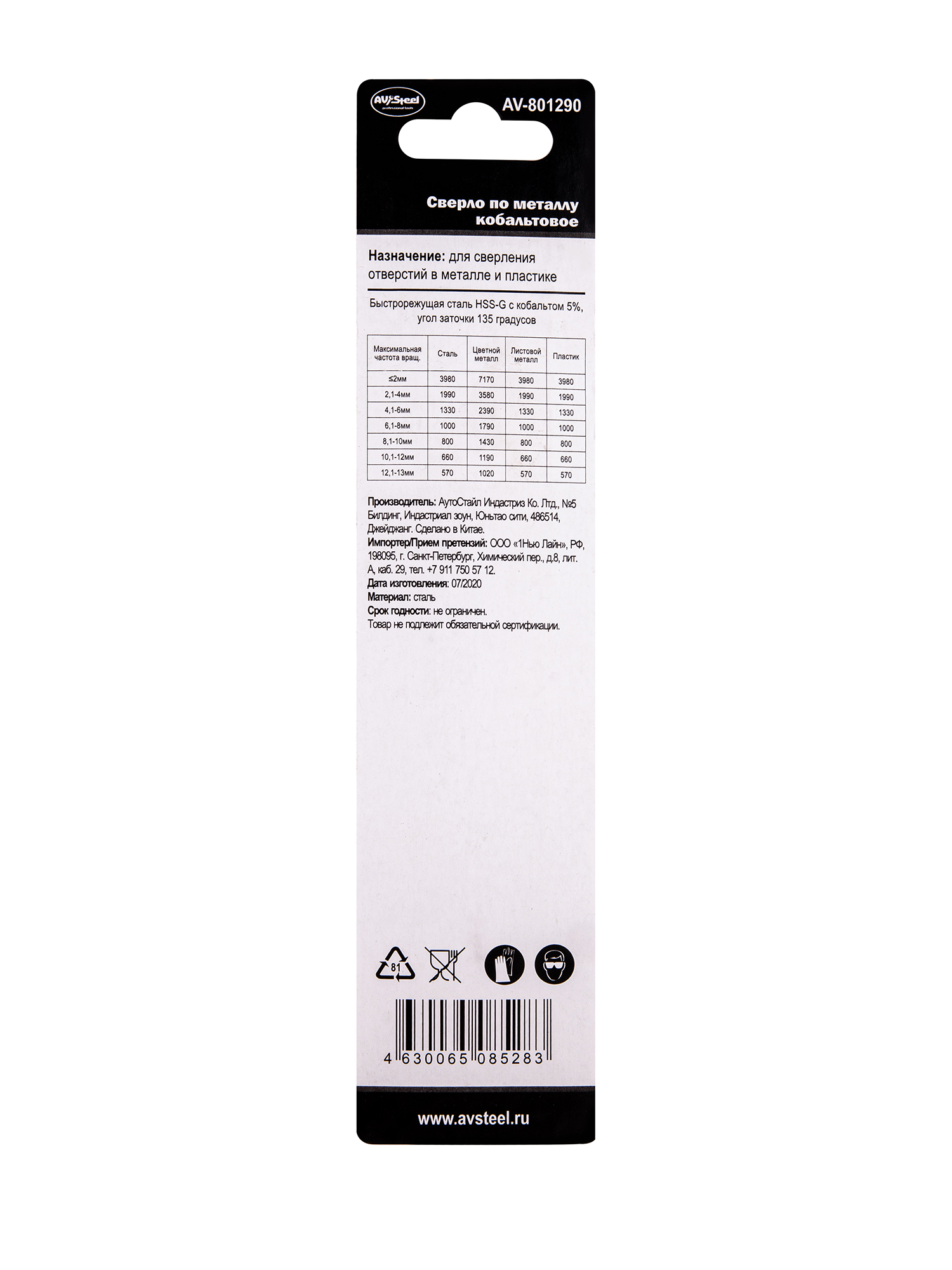 | Подгруппа товара | Cверла по металлу HSS-Co 5% |