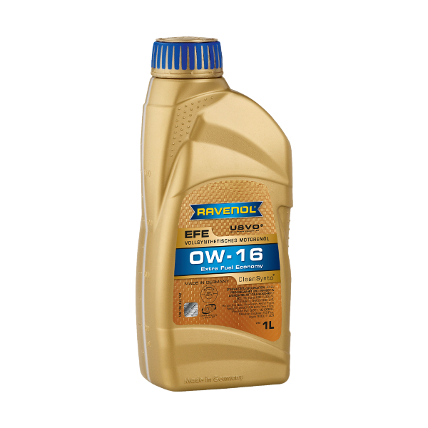 RAVENOL Extra Fuel Economy EFE 0W-16 полностью синтетическое легкотекучее моторное масло для легковых бензиновых и дизельных двигателей. Особенно рекомендуется для гибридных двигателей. Снижает трение, износ и расход топлива. RAVENOL Extra Fuel Economy EFE 0W-16 - полностью синтетическое легкотекучее моторное масло новейшего класса вязкости 0W-16, лицензированное по API SN, изготовлено с применением технологии CleanSynto® для легковых бензиновых двигателей с и без турбонаддува и непосредственным впрыском топлива.